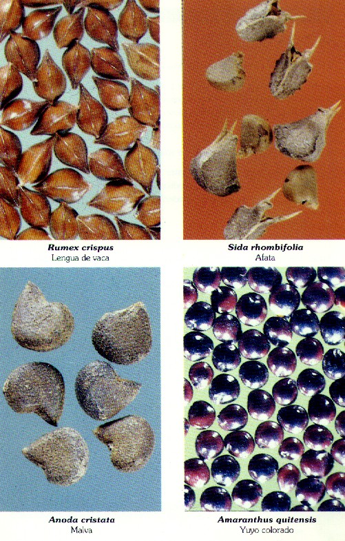 simples y largos. Semilla triangular, reniforme, de color castaño oscuro,
